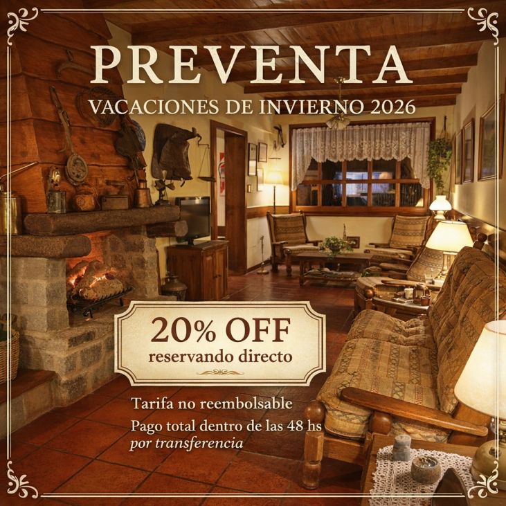 Requiere el pago total dentro de las 48hs de efectuada la reserva. // Mínimo 3 noches. // Solo en reservas directas. // Únicamente pago por transferencia bancaria. // Cupos limitados. // No acumulable con otras promociones.